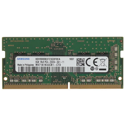 Соответствующая типу DDR4 8-гигабайтная оперативная память SODIMM Samsung [M471A1K43CB1] может использоваться в составе как ноутбуков, так и компактных компьютеров, материнские платы которых обладают совместимостью с памятью SODIMM. Перед вами – очень надежное устройство. Это неудивительно, ведь речь идет о продукции Samsung.